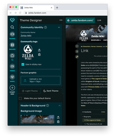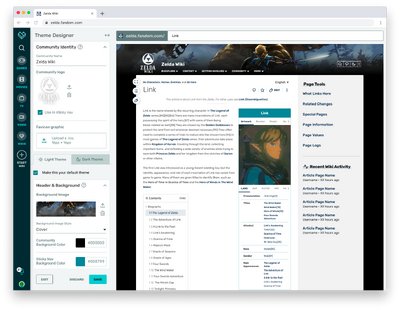 Będziecie mieli możliwość łatwego przejścia pomiędzy dwoma motywami poprzez interfejs Kreatora motywu, aby móc pracować nad każdym z nich i porównać jak między sobą wypadają, a wszystko to znajdzie się w tym samym oknie podglądu. Pojawi się możliwość ustawienia domyślnego motywu dla społeczności, przedstawiając czytelnikom doświadczenie, które jako administratorzy uważacie za najlepsze dla waszych wiki.