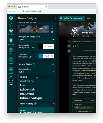 Dla importu obecnego motywu Kreator motywu zastosuje nieco logiki koloru do spojrzenia na wasz motyw Oasisa podczas procesu importu i ustali, czy jest on jasny lub ciemny, a następnie zgodnie z tym zapisze go. W tym samym czasie uczyni wszystko, żeby stworzyć odpowiedni motyw dla drugiej opcji. Dla przykładu, jeżeli społeczność Gwiezdnych wojen Wiki zaimportuje ich motyw, Kreator motywu rozpozna go jako jasny, a następnie przypisze standardowy motyw dla trybu ciemnego. Osobiście nie możemy się doczekać, gdy na platformie zobaczymy różne motywy Jasnej i Ciemnej strony Mocy z wszelkich wiki o Gwiezdnych wojnach.
