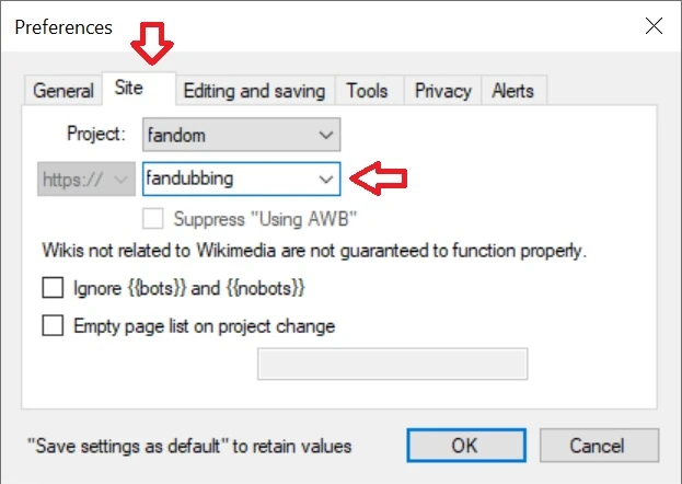 - Przejdź do Options → Preferences → Site.