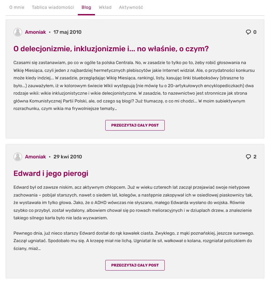 Wróć do zakładki "Blog" w swoim profilu, aby zobaczyć listę wszystkich swoich wpisów na blogu.