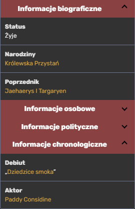 Po stworzeniu prostego infoboksu można przejść do używania bardziej zaawansowanych pól. W tej sekcji stworzymy szablon widoczny z prawej.